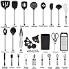 - 33 COOKING UTENSILS – Utensil Set includes everything you need to cook that perfect dish,includes Slotted Spatula ,Slotted Spoon,Flexible Spatula,Slotted Turner, Solid Turner, Pasta Server,Solid Spoon, Kitchen Tongs, Draining Spoon, Whisk ,Deep Soup Ladle,Spatulas,Brush,Peeler,Pizza Cutter,Bottle Opener,Potato,Pusher,Ice-cream spoon,Can opener,Grater,Scissors,measuring cups and spoons set,Small Brush,,Small spatula,Spatula,Holder